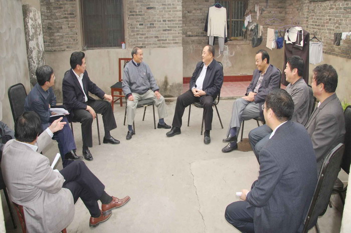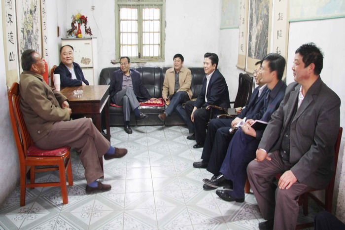 许崇信一行首先来到省农垦系统规模最大的“西湖花园”职工小区,考察农场职工的居住条件,走访了小区居民“五一”劳动奖章获得者刘顶海和赵俭波。在与劳模交谈中,许主任了解到,近几年农场结合移民迁建、廉租房建设、危旧房改造等项目,已建成各类成套保障性住房3800套近35万平方米,占整个职工住房的78%,职工居民的住房条件和生活质量得到了明显改善。他表示十分欣慰,对农场民生工程建设所取得的成绩给予了高度赞誉。接着,许主任看望了老农业科技人员代表、寿农01-02小麦育种人闫映红,认真了解了有关种子的科研、生产、加工及经营情况,详细询问了当前皖垦种业发展中存在的困难和问题。许主任不顾疲劳,又继续走访了靳传亭、顾益善等离退休老干部,每到一户许主任都嘘寒问暖,从日常衣食住行到生病就医保障,都要询问和了解。老干部们十分感动,纷纷和他谈起了自己的所思、所盼、所忧。许主任希望他们保重身体,珍惜美好生活,继续为农场建设发展发挥余热。最后,在老党员代表梅忠祥家的小院里,许主任与大家促膝谈心,一起回顾了农场近些年来的巨大变化,探讨了下一步加快农场发展的新思路和新举措。庭院内的气氛热烈祥和,不时响起爽朗的笑声。