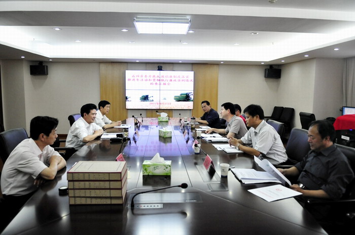 9月27日下午,省国资委纪委副书记李丰荣一行五人来农垦集团检查反腐倡廉制度落实推进年活动和贯彻执行廉政准则情况。集团公司纪委书记储诚胜以及人力资源部、监察室主要负责同志进行了专题汇报。