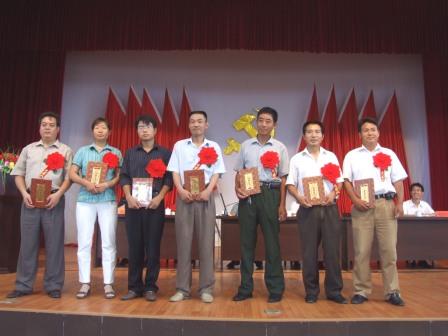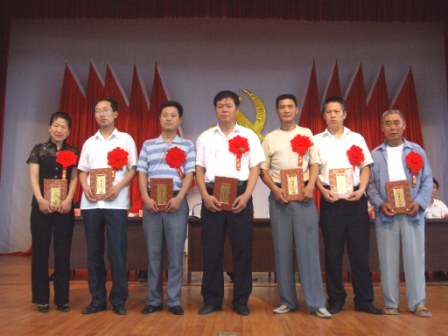 大会在雄壮的《国歌》声中开始,党委书记杨俊宇宣读了场党委《关于表彰先进党组织、优秀党务工作者和优秀共产党员的决定》,场党委委员对5个先进基层党组织、4名优秀党务工作者和33名优秀共产党员进行了颁奖,各类先进典型作了精彩的发言。会议同时表彰了庆祝“七一”构建和谐农场征文比赛、学习“决定”理论知识测试等系列党日活动中涌现出的获奖单位和个人。场党委副书记张建民代表党委发表讲话。“讲话”首先回顾了中国共产党走过的86周年光辉历程,总结了农场一年来农场党建工作和“三个文明”建设取得的成就。对如何围绕中心推进党建工作提出五点希望:一是注重发挥党组织、党员在和谐农场建设中的作用;二是广大党员做和谐家庭、和谐邻里的带头人;三是组织开展“党员承诺制”活动;四是创新民主评议党员制度,启动党员“挂红星”工程;五是开展好“寻找身边亮点”,积极“争先创优”活动。张建民最后要求各级党组织重点做好先进性教育活动、加强新农村建设、强化组织建设、和谐企业建设、党建知识培训、迎接党的十七大的理论学习等工作,特别是扎实开展好“作风教育月”活动。他号召广大党员干部立足“五个做起”:心系大局,振兴农场,从本职做起;转变职能,服务基层,从实际做起;严守党纪,练就自律,从点滴做起;提高修养,增进团结,从我做起;树立正气,创文明机关,从现在做起。做到“十带头”:带头学政策学科技、带头执行党的决定、带头进行产业结构调整、带头参加公益事业、带头参与文明创建活动、带头执行计划生育政策、带头维护稳定、带头建言献策、带头帮扶帮困、带头提高服务质量,为建设新农场做出应有的贡献。