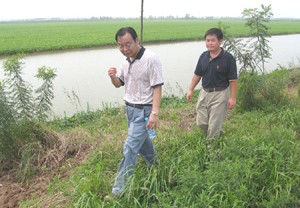 在场领导涂玉龙等同志陪同下,李总等人首先来到中心桥查看水位,接着检查了各分场险要堤段。尽管当时天气闷热、日光灼人、道路泥泞,但李总仍坚持走完近6公里堤坝。