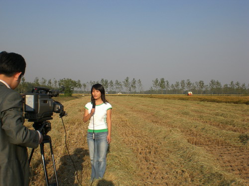 大圹圩农场掀起秋收高潮 地方电视台现场采访