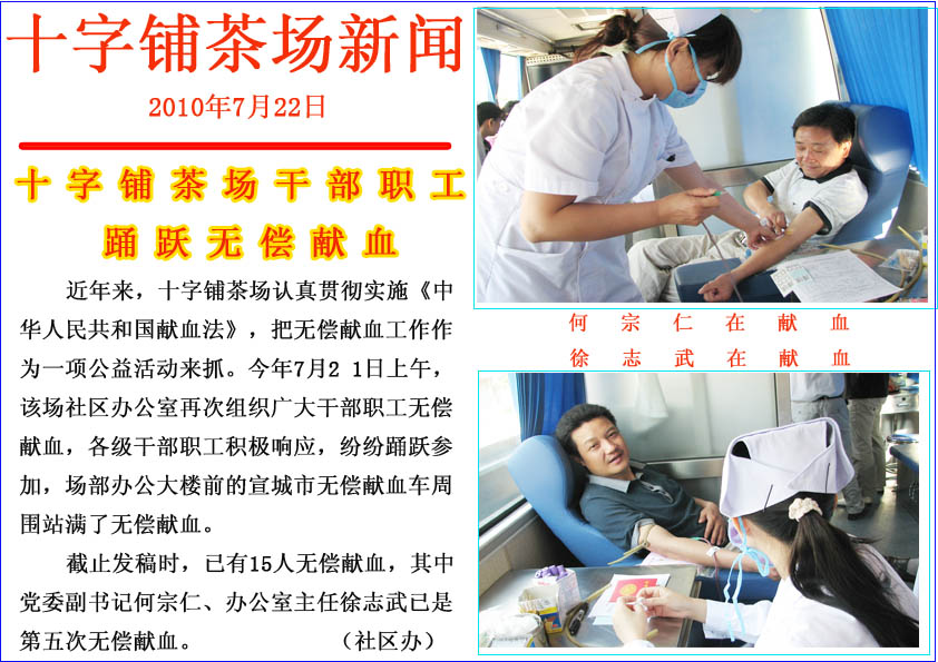 十字铺茶场干部职工踊跃无偿献血