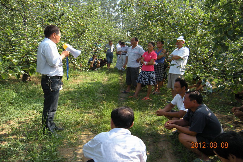 砀山果园场万余亩酥梨也即将进入采收旺季。入夏以来,该场多措并举加强酥梨标准化生产。一是坚持“周例会”制度。全部安排在果园现场举行,确定一周生产管理主题,总结上周工作成效,查找存在问题,提出解决办法,确保生产工作的针对性、时效性和统一性;二是落实生产技术措施。严格按“五统一”管理要求,做到有布置、有落实、有检查、有考核,统一规定生产技术措施,统一要求完成时限,统一按标准检查验收,并跟踪督促承租大户及特殊种植户及时有效地落实到位,在田间地头解决生产技术问题;三是抓好抗旱等工作。根据今年夏季雨水偏少和果品夏季生长需水量较大的实际,及时动员部署抗旱工作,充分运用各类抗旱设备,为职工抗旱提供技术指导和服务,有效地缓解了旱情,为今年丰产丰收奠定了基础。